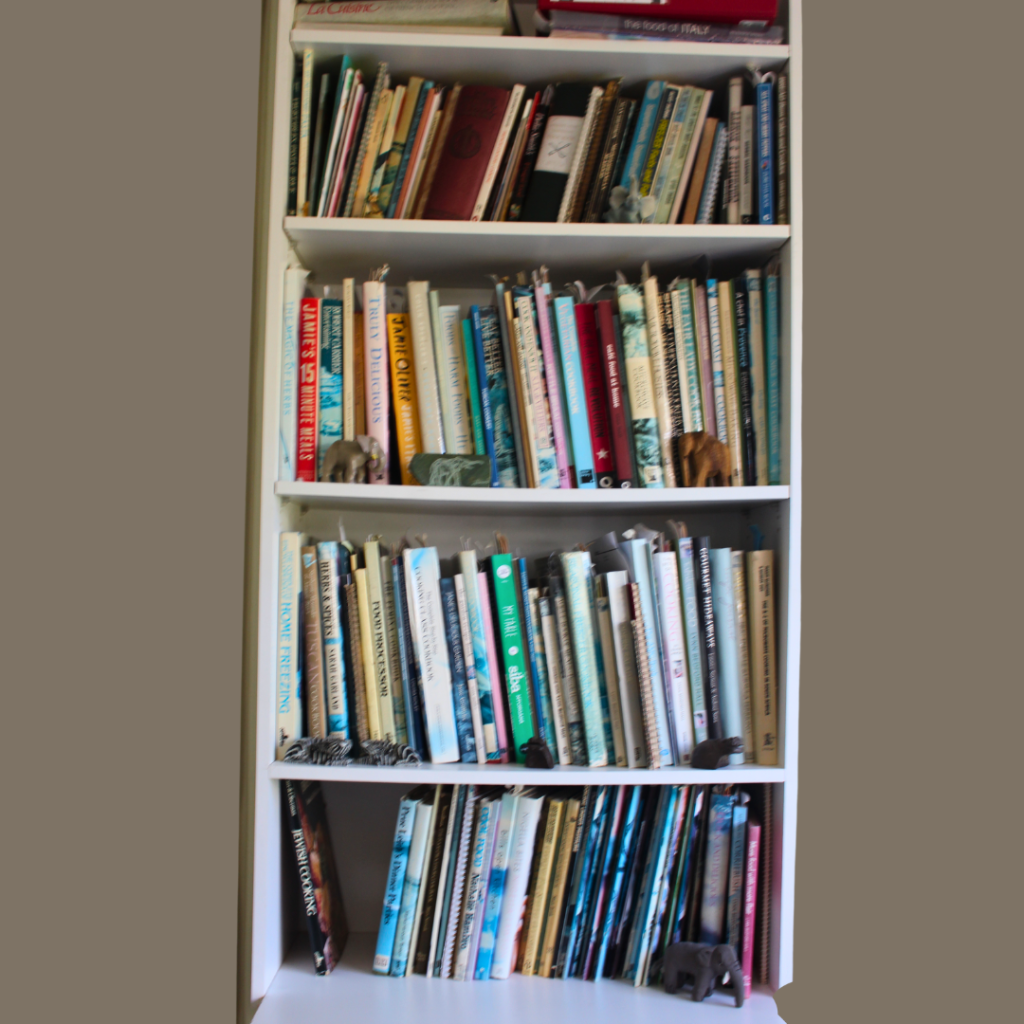 The picture tells the story of my love for recipe books and, of course, food.